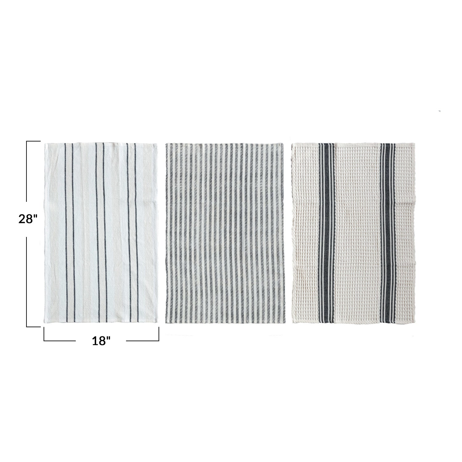 These cotton printed terry cloth tea towels combine practical absorbency with charming multi-color patterns and stripes. Designed with stitched edges for durability, each towel offers a soft texture that’s gentle on dishes and hands. Available in eight stylish designs, they add a touch of warmth and personality to your kitchen while making everyday cleanup easier and more enjoyable.