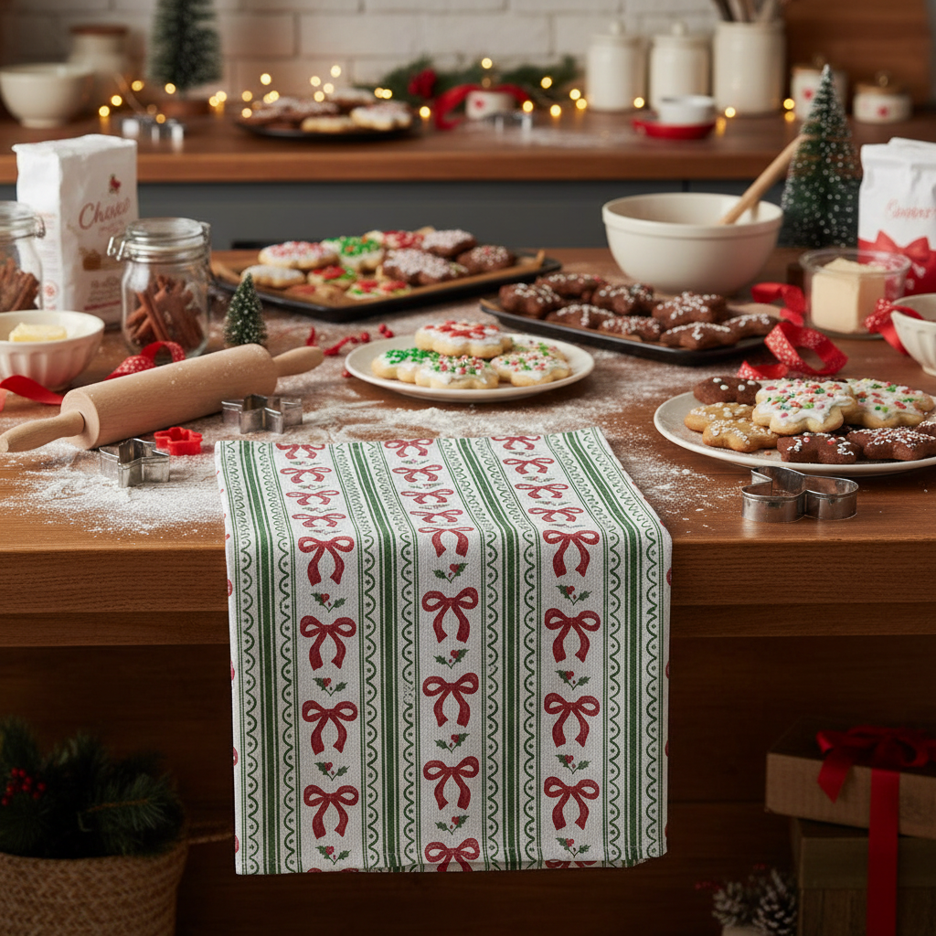 Kitchen Tea Towel Throw in the (ordinary) towel. Meet the product that started it all. The Geometry House Tea Towel is a cult favorite for a reason. Created from a tightly-woven Geoweave™ fabric that is ultra-absorbent, quick-drying and never wrinkles, this towel is built to work – while looking like a dream. SKU: TT-MF-christmas-bow-stripe GTIN/UPC: 00840392766579 ... * ♺ Made from post-consumer recycled materials * 18" x 30" * Single-sided print ... Chore responsibly. From drying dishes to wiping up spills to accenting your kitchen with the season’s most enchanting prints, this Tea Towel does it all – without a negative impact on the environment. Our towels are created from post-consumer recycled products using less water than traditional methods and minimizing our carbon footprint. And due to its patented weave, high absorbency and quick dry time, you can clean with fewer harsh chemicals and wash it less often, reducing yours. Impact your home, not the environment. Discover the Geometry