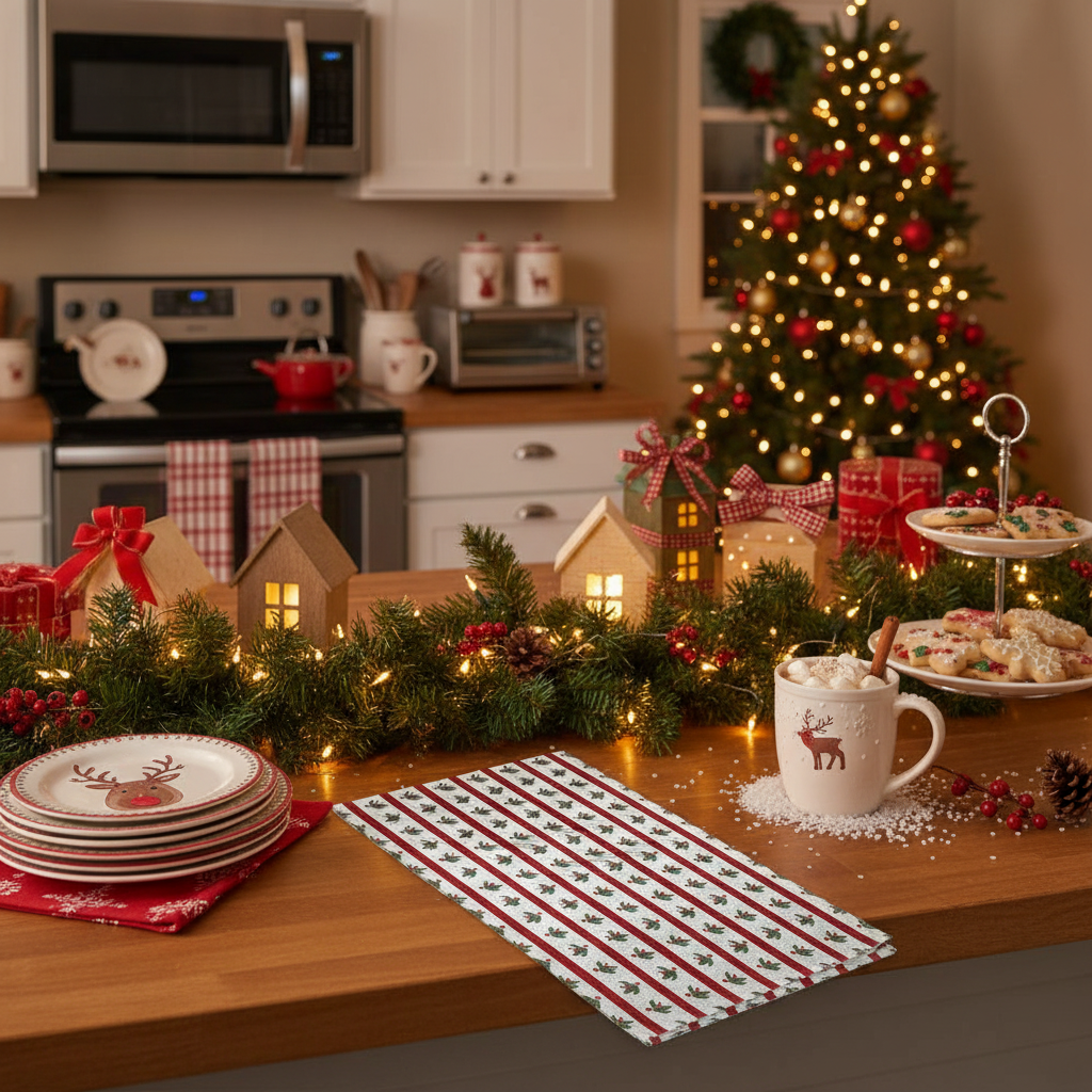 Kitchen Tea Towel Throw in the (ordinary) towel. Meet the product that started it all. The Geometry House Tea Towel is a cult favorite for a reason. Created from a tightly-woven Geoweave™ fabric that is ultra-absorbent, quick-drying and never wrinkles, this towel is built to work – while looking like a dream. SKU: TT-MF-christmas-holly-stripe GTIN/UPC: 00840392766593 ... * ♺ Made from post-consumer recycled materials * 18" x 30" * Single-sided print ... Chore responsibly. From drying dishes to wiping up spills to accenting your kitchen with the season’s most enchanting prints, this Tea Towel does it all – without a negative impact on the environment. Our towels are created from post-consumer recycled products using less water than traditional methods and minimizing our carbon footprint. And due to its patented weave, high absorbency and quick dry time, you can clean with fewer harsh chemicals and wash it less often, reducing yours. Impact your home, not the environment. Discover the Geometr