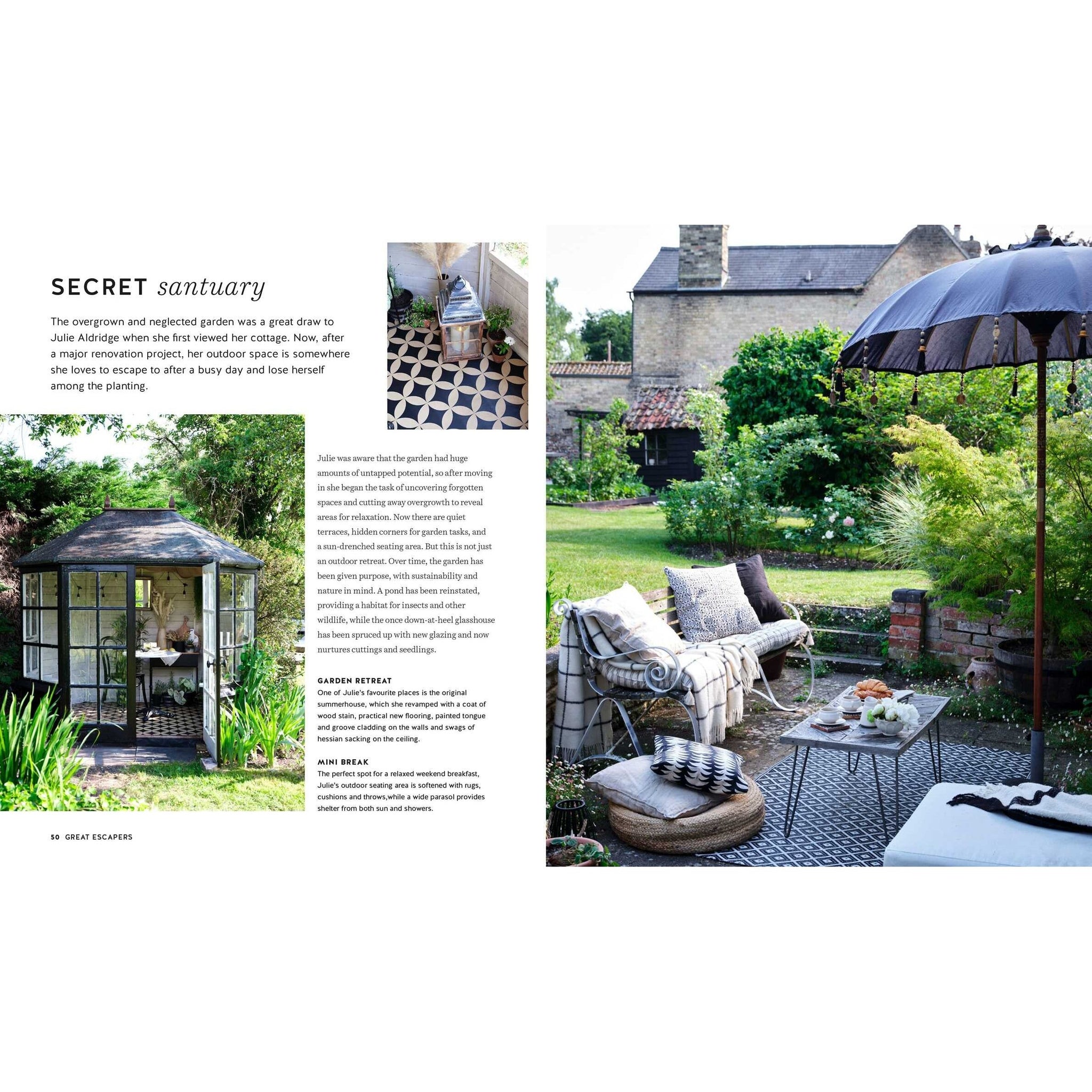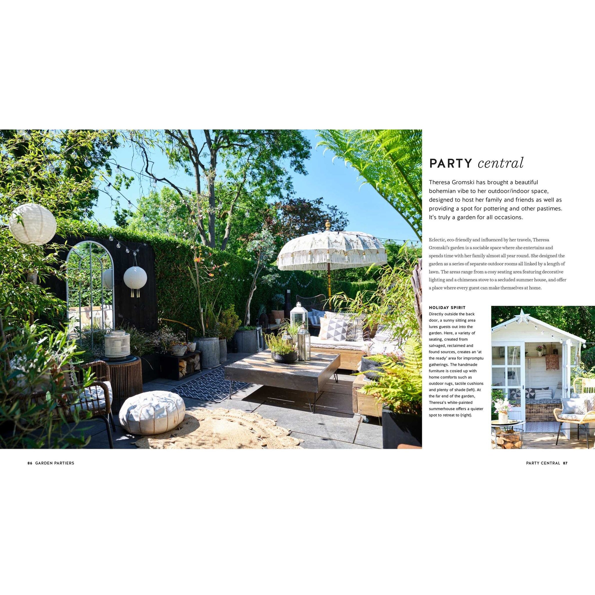 There are a multitude of different ways in which we use our outside spaces, and in Gardens for the Soul Sara Bird and Dan Duchars explore ways to create and style an outdoor haven that will suit your lifestyle. Day Dreamers seek solitude and a therapeutic experience, while Home Harvesters use their garden space to grow flowers or fruit and veggies, Garden Partiers put their outside space to work as an entertaining zone for friends and family, and Great Escapers aim to recreate a chilled vacation vibe at home. Sara and Dan visit real-life yards that fall into these categories, from tiny patios to larger spaces, to glean ideas, tips, and inspiration. With a focus on sustainability and reclaimed materials, there are suggestions for choosing garden elements, from décor to lighting to furnishings and accessories, as well as easy craft projects that add quirky personal touches.