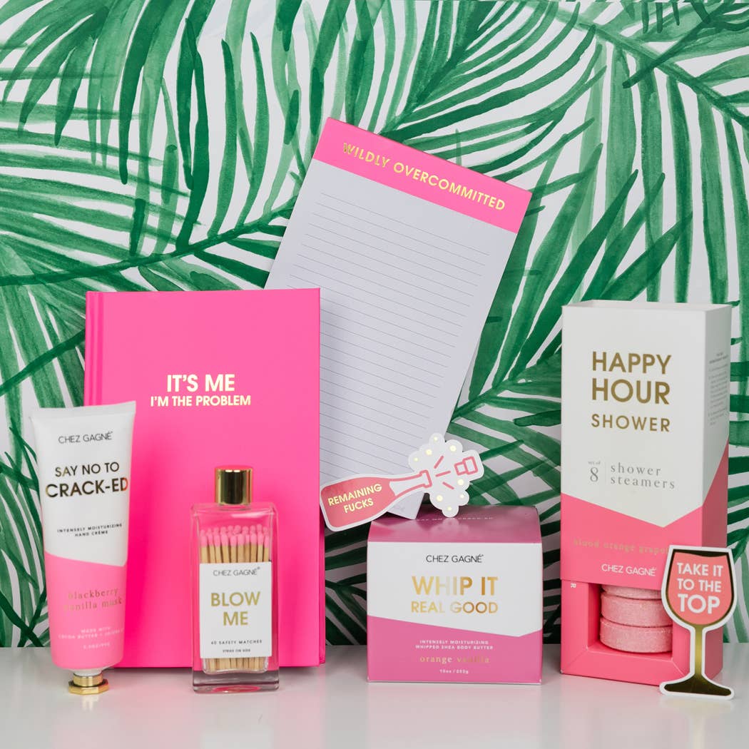 What do you get when you combine exceptionally thick paper, superb perforation and a wildly accurate and often hilarious phrase? Chez Gagné’s perfect notepads. Here to appease even the most OCD of us, our pristine perforated tear and heavy weight lined paper notepads are the ideal writing surface for manically jotting out your honey-do, shit-to-do, reminder or grocery list. Because we all know if it doesn’t get written down, it’s not getting done. We promise, you’ll  love these!