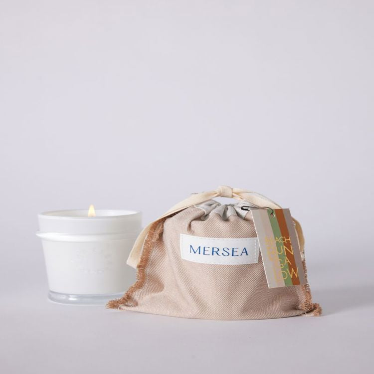 The ever-popular Sandbag Candle, now in a NEW, vibrant and playful scent-specific colorway. Our classic 6.5 ounce candles are poured in sheer white glass vessels that can be repurposed. Candles are thoughtfully packaged with a ready-to-go set of matches in a reusable canvas bag, perfect for collecting seashells and treasures. Our signature, uplifting gift tag makes the Sandbag Candle a perfect gift.
