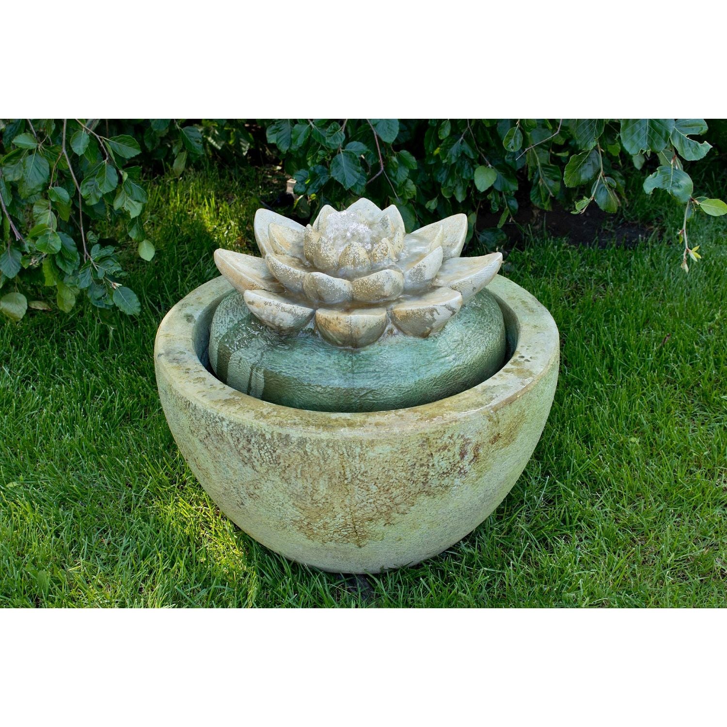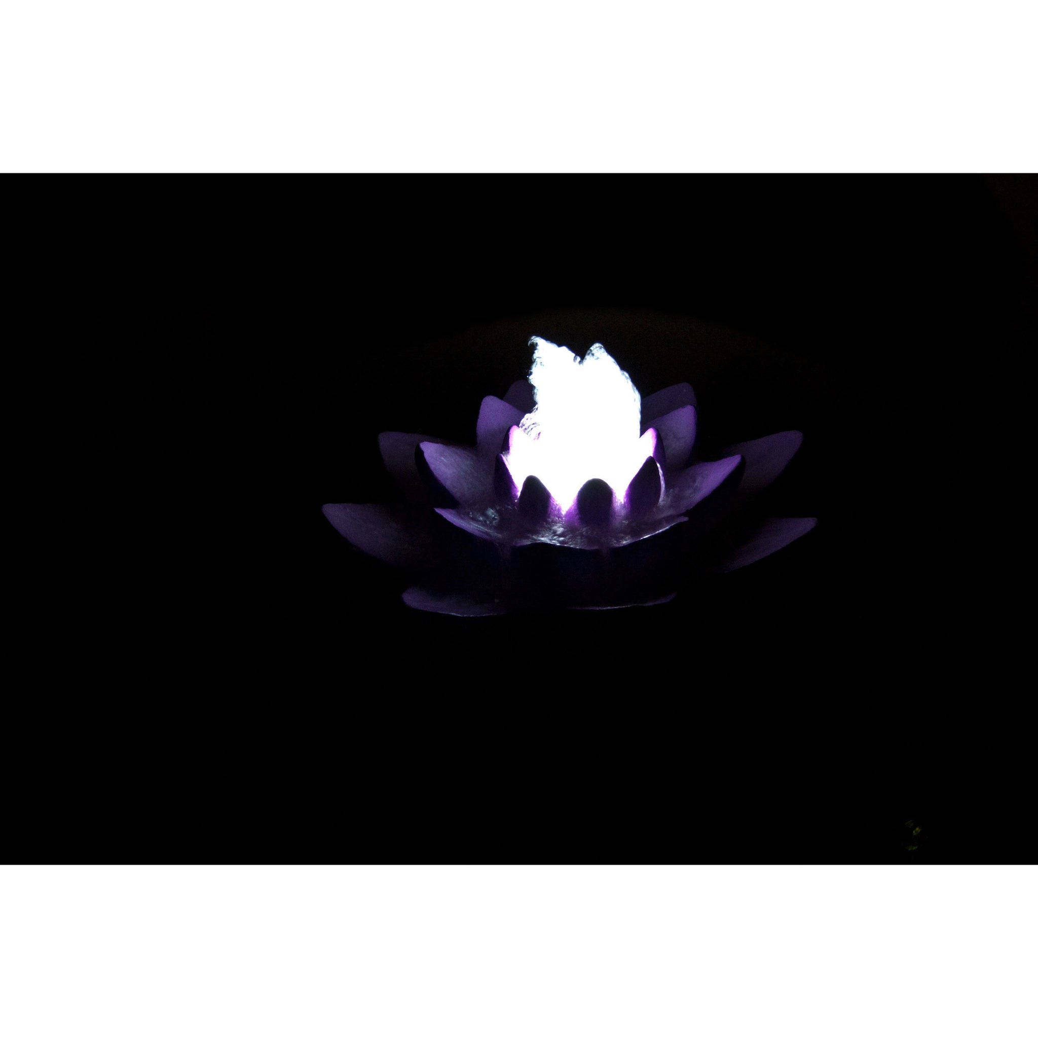 The Lotus Fountain is a beautiful complement to a garden's multiple colors. Whether in hi-tone paint or relic stain, its graceful design will captivate all. A brilliant underwater LED light kit is included for a shimmering night-time effect.