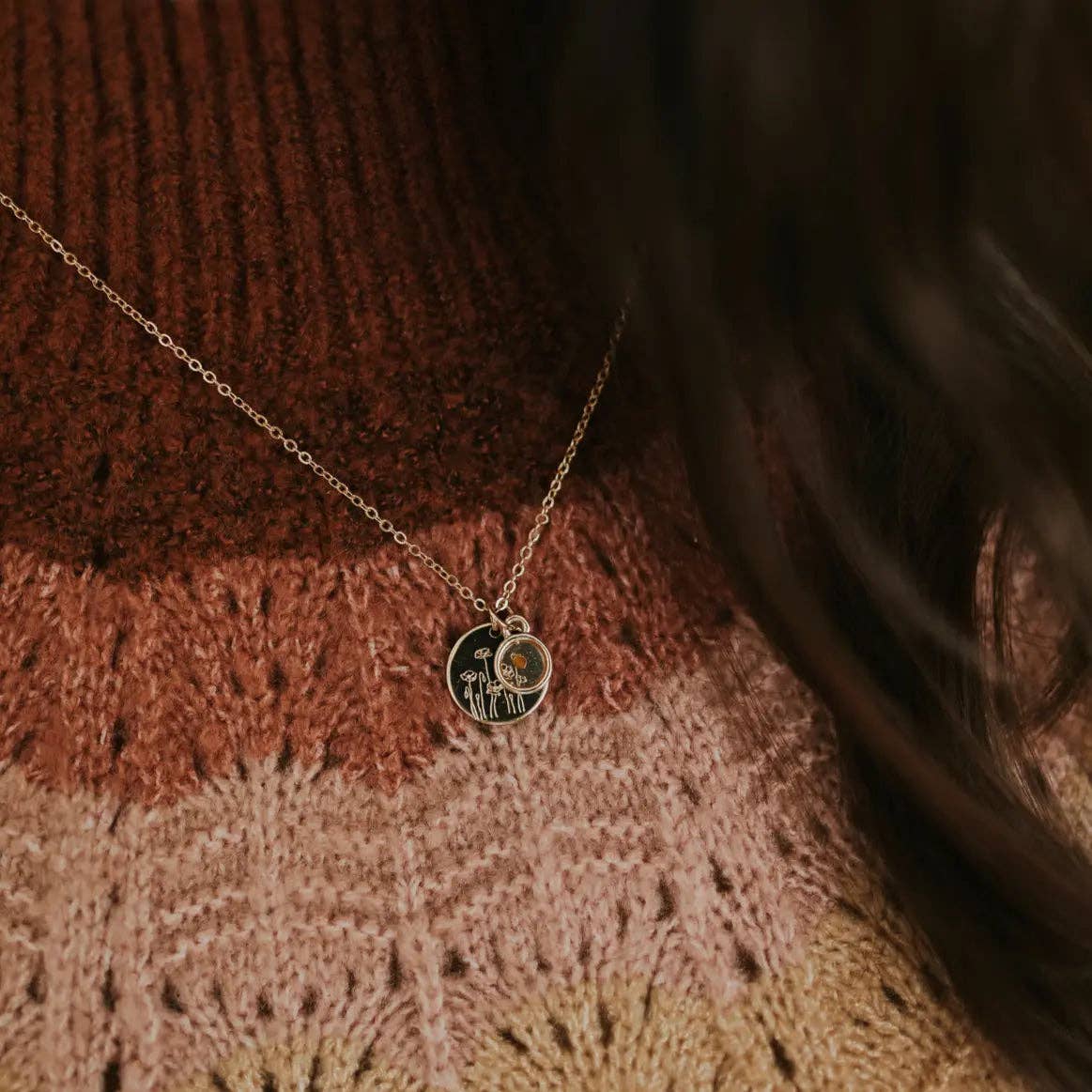 The Poppy is a symbol of sunshine, growth, and light-heartedness. It also feature a mustard seed, which serves as a reminder that even small and simple things can move mountains. It is also a reminder that faith is like a little seed, and when planted it will grow. Just as a flower blooms with a little nurturing, so does our faith. "If ye have faith as a grain of mustard seed, nothing shall be impossible unto you." Matthew 17:20 The Poppy Necklace with Mustard Seed is 18k gold plated. The chain is 18 inches and comes with an extender up to 20 inches. Mauve Jewelry Co.