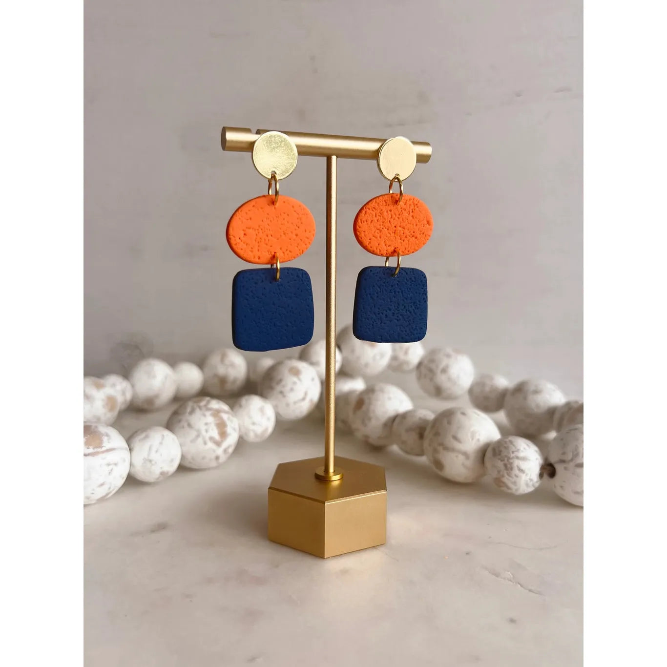 Show off your school spirit with our team color earrings! Crafted from high-quality materials, these earrings feature vibrant team colors that are perfect for game day or everyday wear. Lightweight and stylish, they add a spirited touch to any outfit. Cheer on your favorite teams with these bold and colorful earrings! • Handmade polymer clay • Hypoallergenic Jewelry • Orange and Blue Earrings • Orange Jewelry Gifts • Orange and Navy Jewelry • Team Color Jewelry • Game day Jewelry