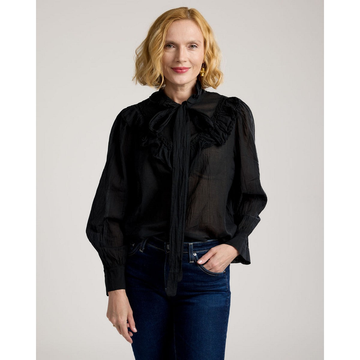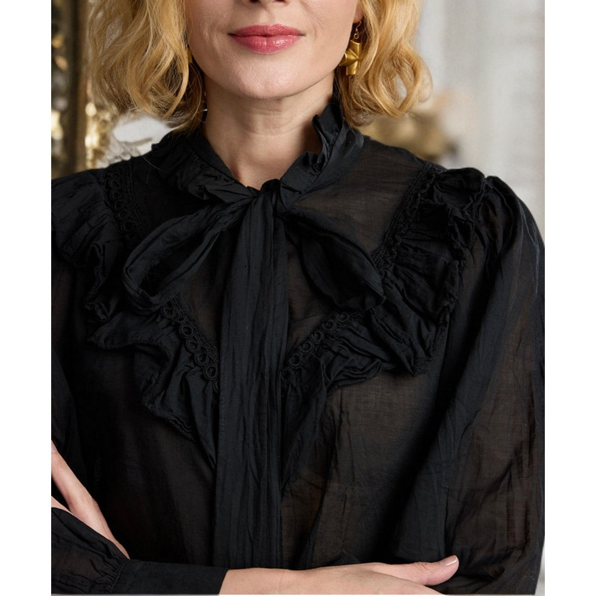 Refined, the Gianna Blouse blends Edwardian charm with a modern, wearable silhouette. Crafted from airy Italian cotton, it features a button-front design and a softly fitted bodice that flatters without feeling too structured. A feminine tie detail at the neckline which can be tied as a bow or loosely tied for effortless drape