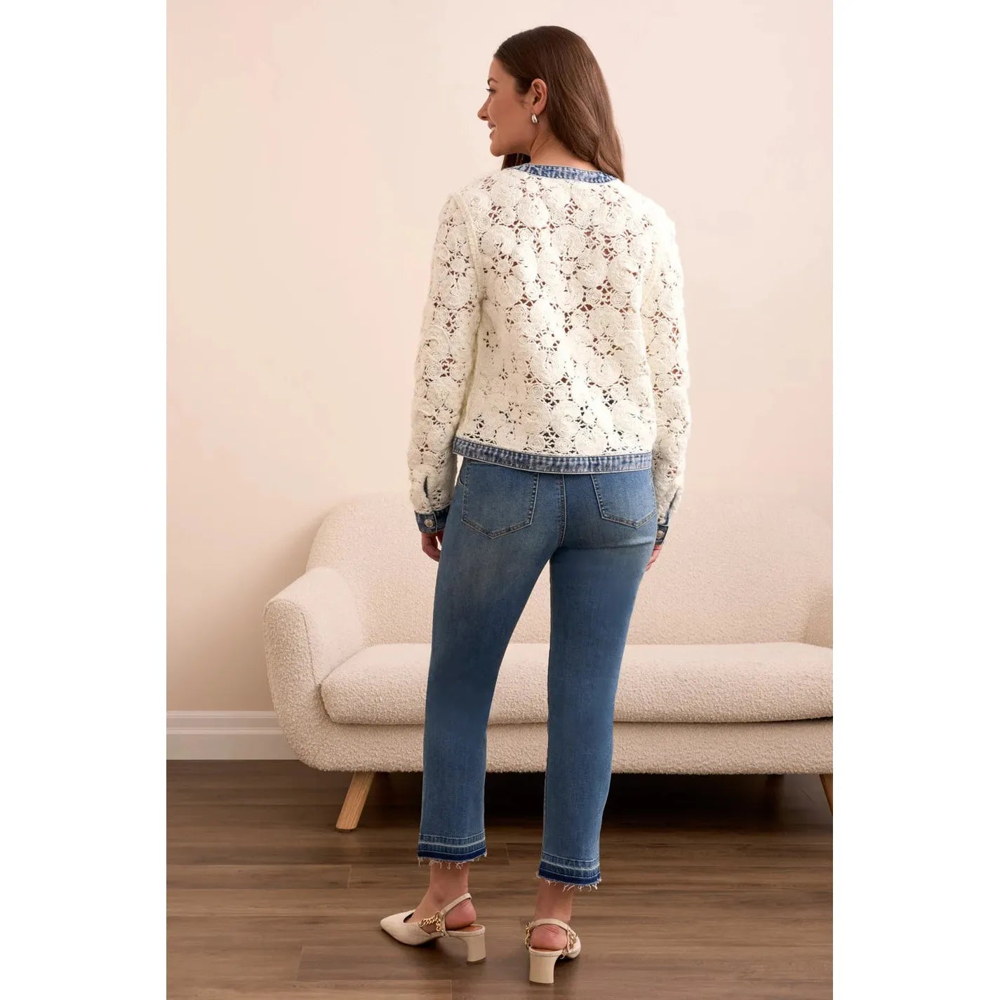 Mixed Media Crochet Jacket w/Denim Detail | Eggshell