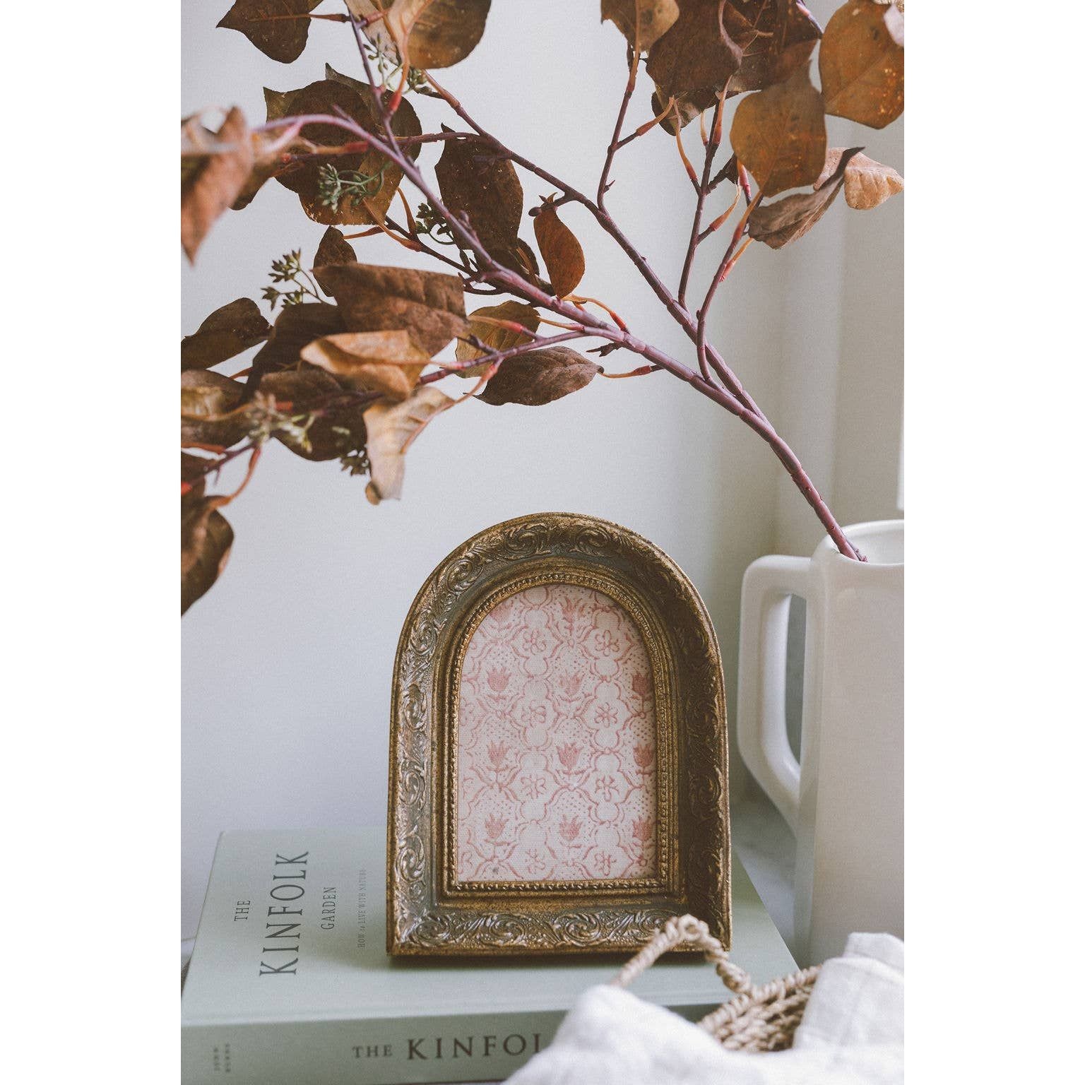 Beautifully crafted resin frames designed for both tabletop and wall display. Each frame features an easel backing and hanging hardware, providing versatile styling options for any space. Complete with protective glass and a decorative face paper insert, these frames can be displayed as-is or personalized with a favorite photo. Their intricate detailing and elegant gold finish make them a standout piece for home decor or a thoughtful gift.