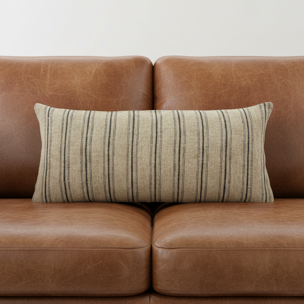 The warm neutrals of the Juniper Linen Lumbar Pillow exude a modern farmhouse style with their rustic linen fabric and classic ticking stripes. Complete with a premium feather down filler for fabulous fluff factor and comfort you'll want to sink your head into.