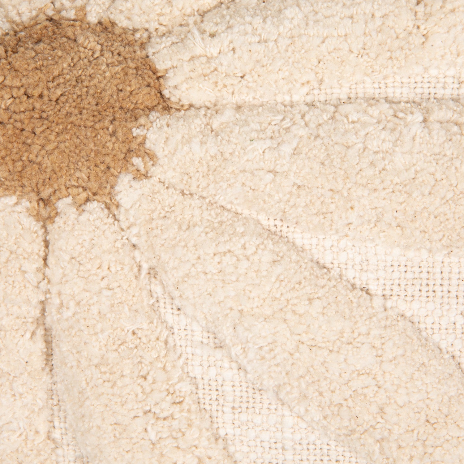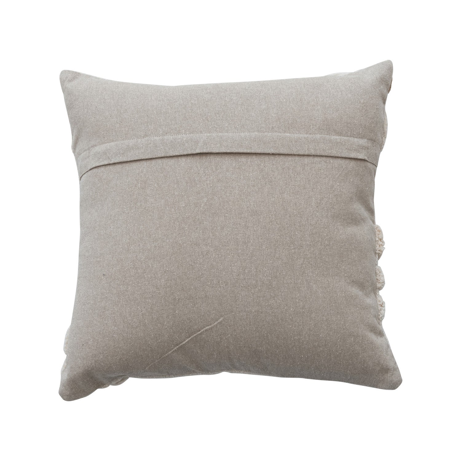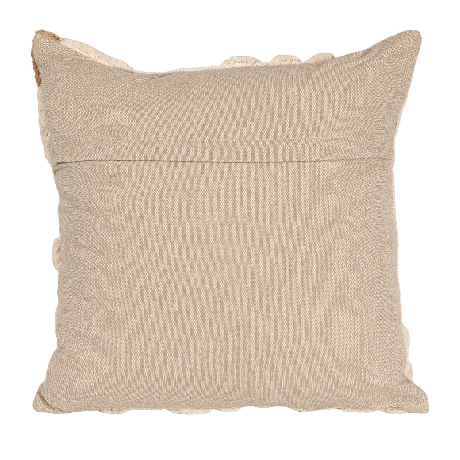 Square Cotton Slub Pillow w/ Tufted Flowers. Natural & Tan Color.