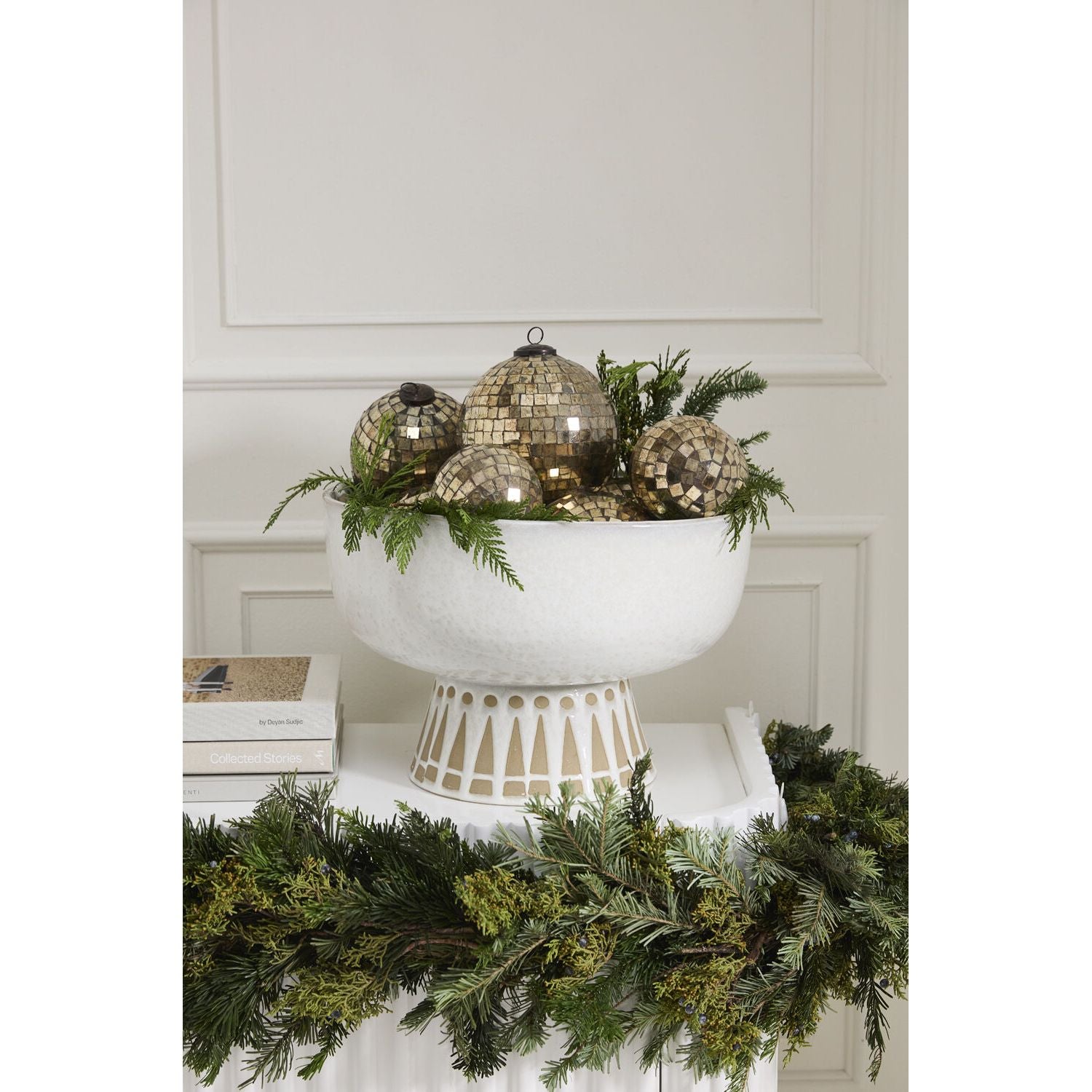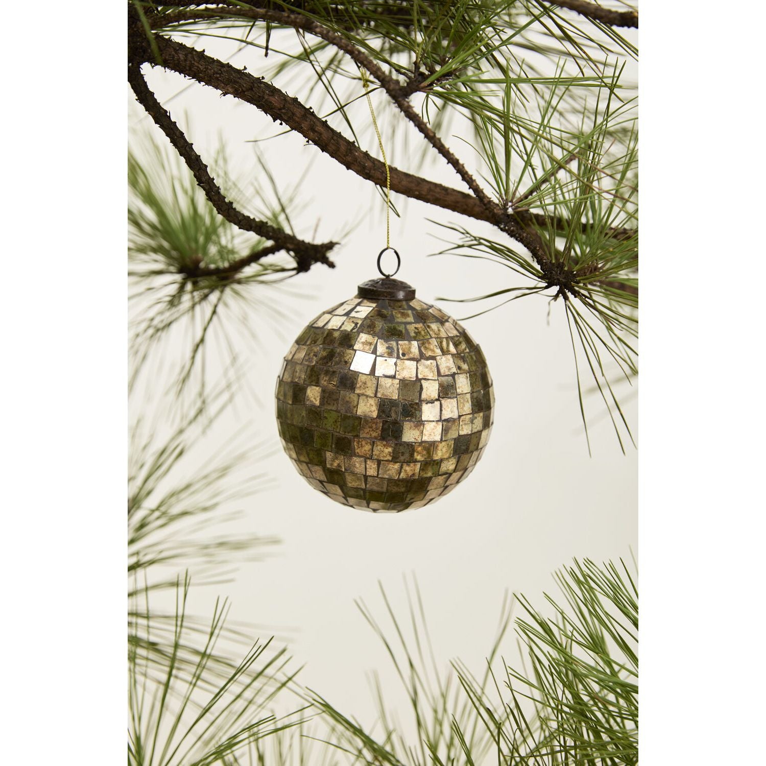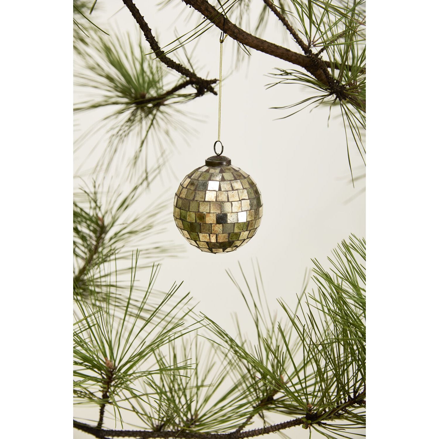 Add a warm glow to a holiday display or Christmas tree with the Antiqued Disco Ball Ornament Collection. Available in three sizes, these tiled glass spheres have a mercury finish and a dark brass metal cap. Capture all the fun of the disco ball trend, but with a vintage vibe! On a tree or piled into a vessel as a decorative bowl filler, this collection will stand out as a seasonal favorite.