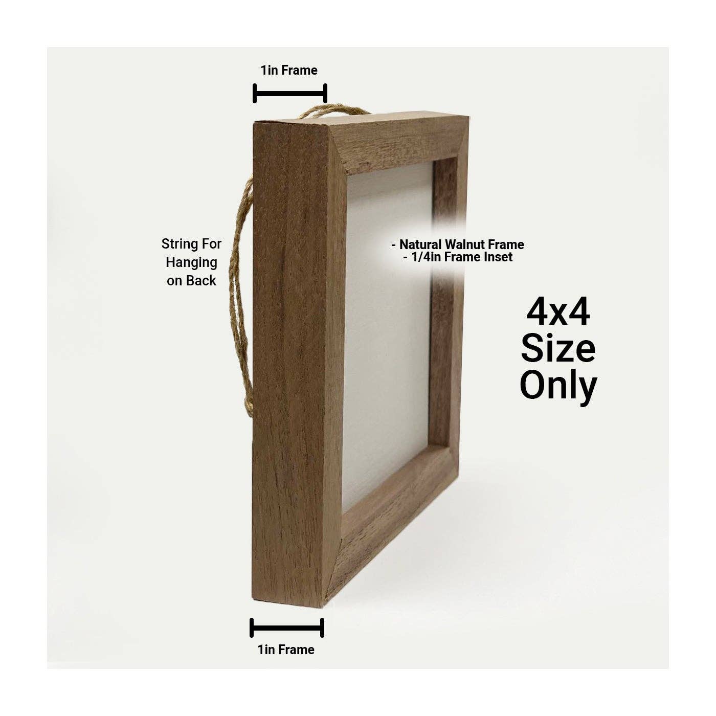 This unique piece is a simple way to bring beauty and charm to any wall or shelf within the home. It is made from high quality American hardwood planks with a hand painted face, and printed with UV cured ink, and is framed in a natural walnut frame. Each piece is unique with its own personality, marks, wood grain, and look. Easy to clean with a dry cloth.