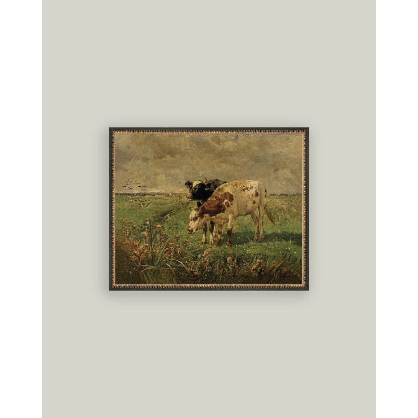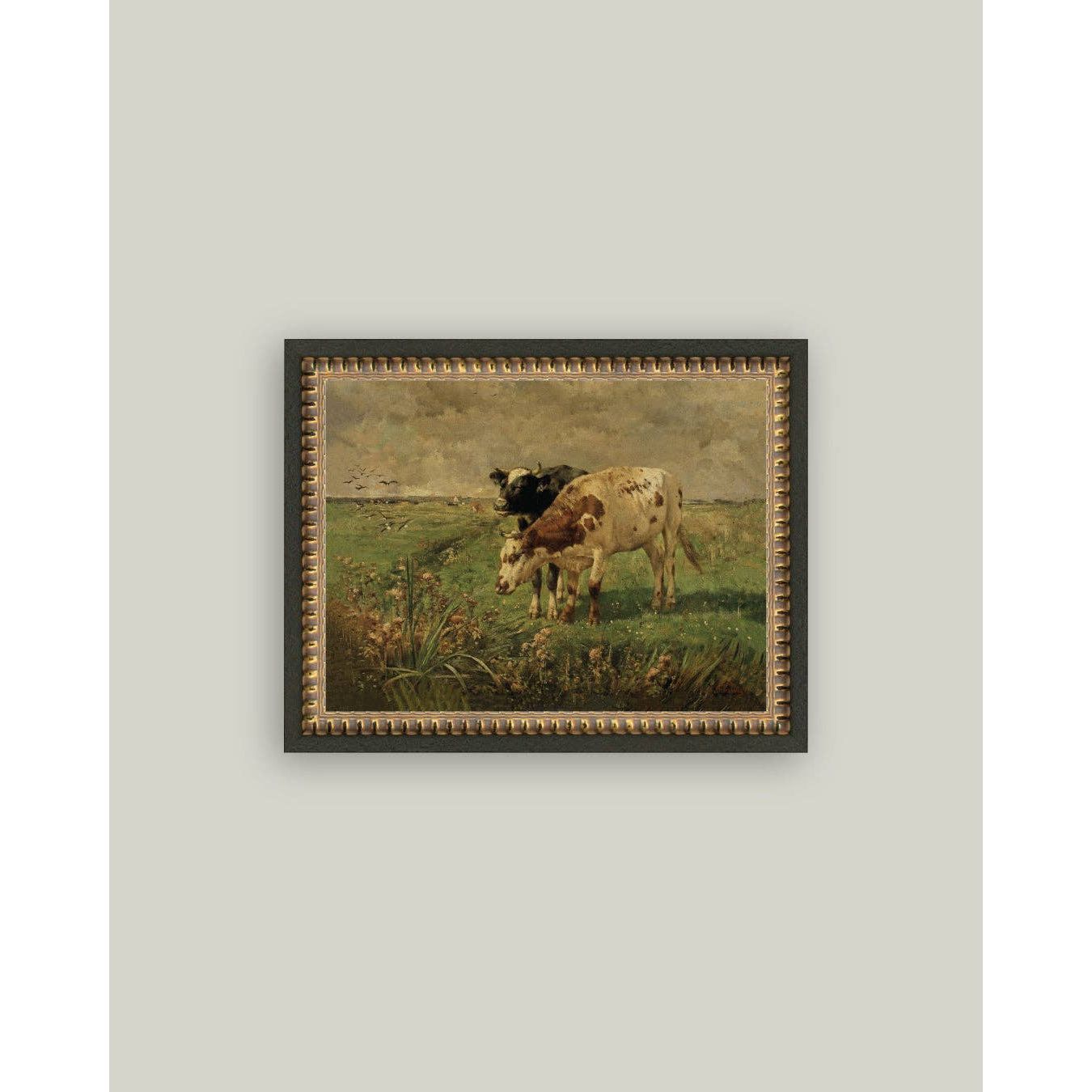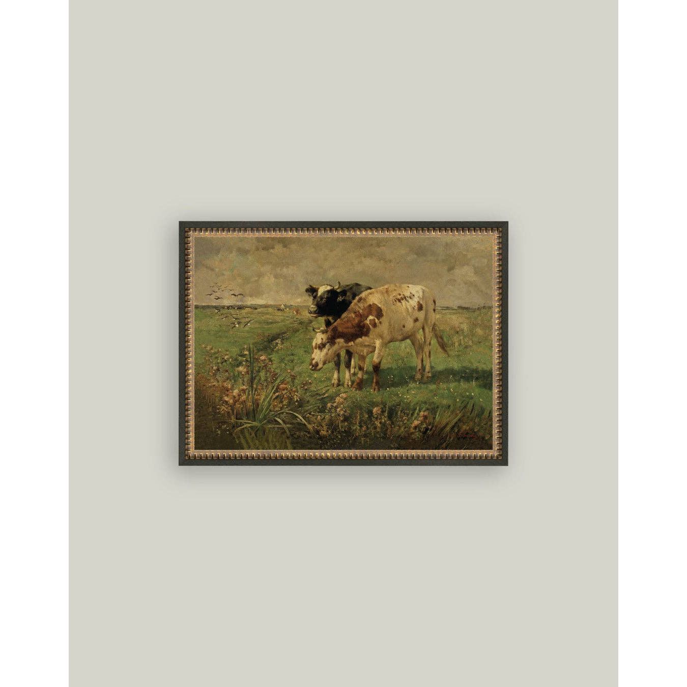 Black & Brown Cows Framed Antique Art | 7 x 5