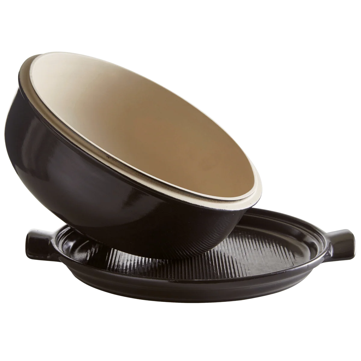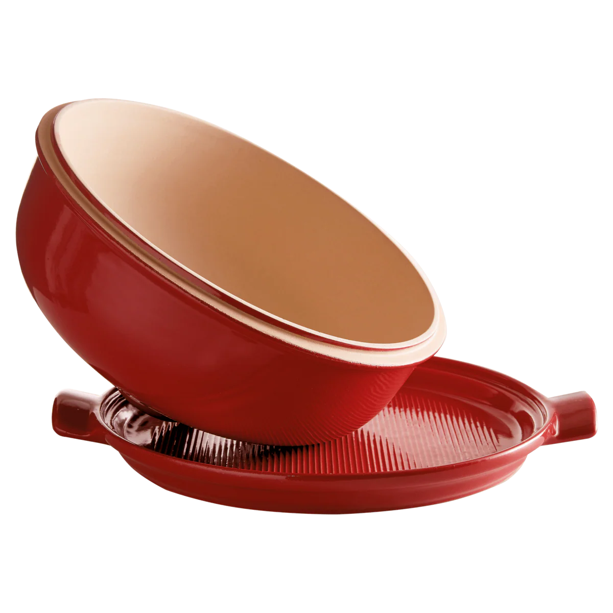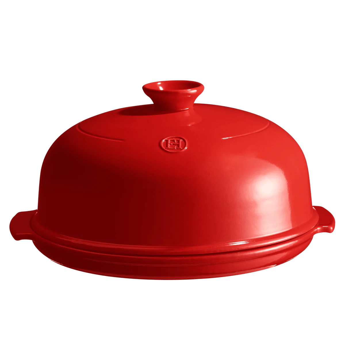 The result of 2 years of research, our Bread Cloche will quickly become your best friend! The rounded shape of the cloche is identical to a traditional domed bread oven, to ensure that your bread has the required level of humidity during the cooking process. Our innovative refractory ceramic will enable you to get a nice, thick crust with a firm, light inside. Rediscover the pleasures of making home-baked bread, with original and simple recipes. The included recipe book gives you advice and tips for making your own bread like you’ve never done before! All Emile Henry products are made in France and offer a ten years guarantee.