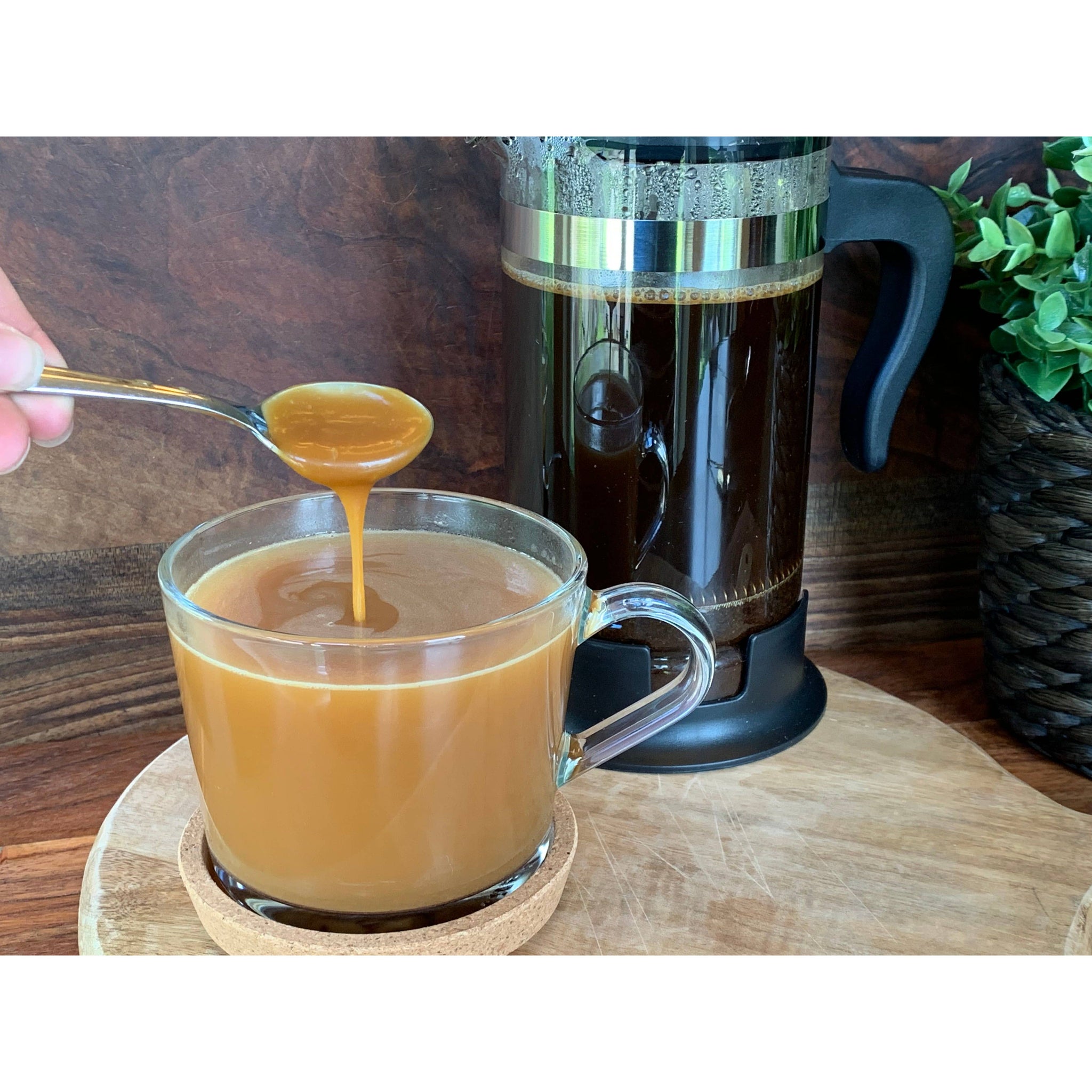 Made with Peet’s Major Dickason's Blend beans, if you like coffee you will love this. Tastes like a Sunday morning! Our rich and coffee-y caramel loves to be poured over cinnamon rolls, banana bread and coffee cake. It's a match made in heaven with brownies and adds the perfect accompaniment to milkshakes, a sip of Irish cream or a mug of hot cocoa.