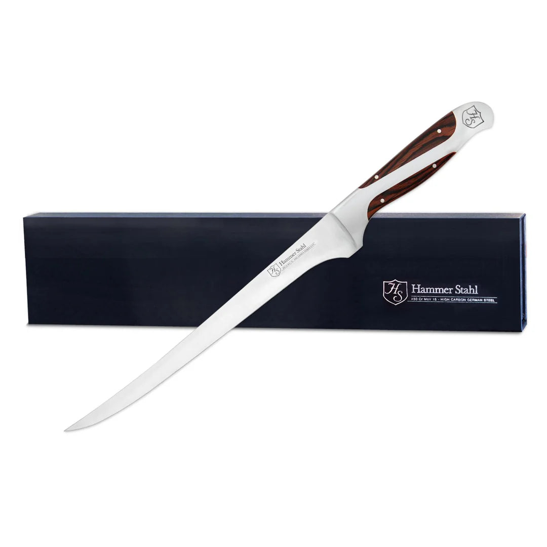 A thin, flexible blade that allows for ease and precision while filleting fish. The narrow blade moves cleanly along bones and evenly slices along the skin, removing it effortlessly from the flesh.