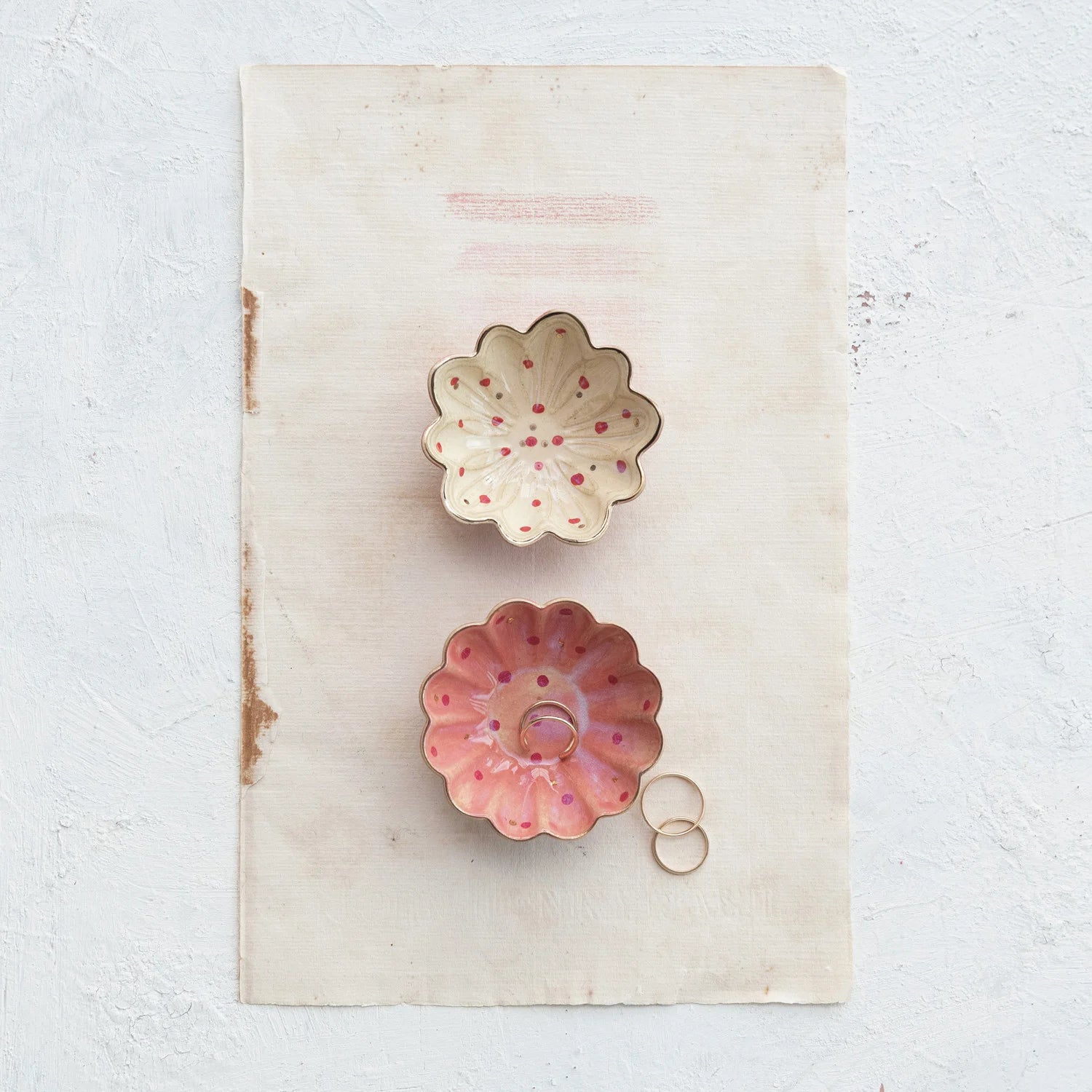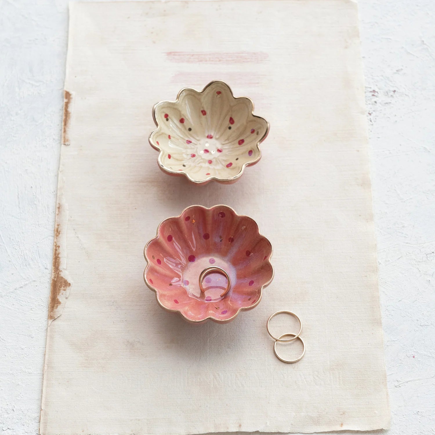 Decorative Stoneware Flower Shaped Dish w/Hand-Painted Dots & Gold Electroplating.