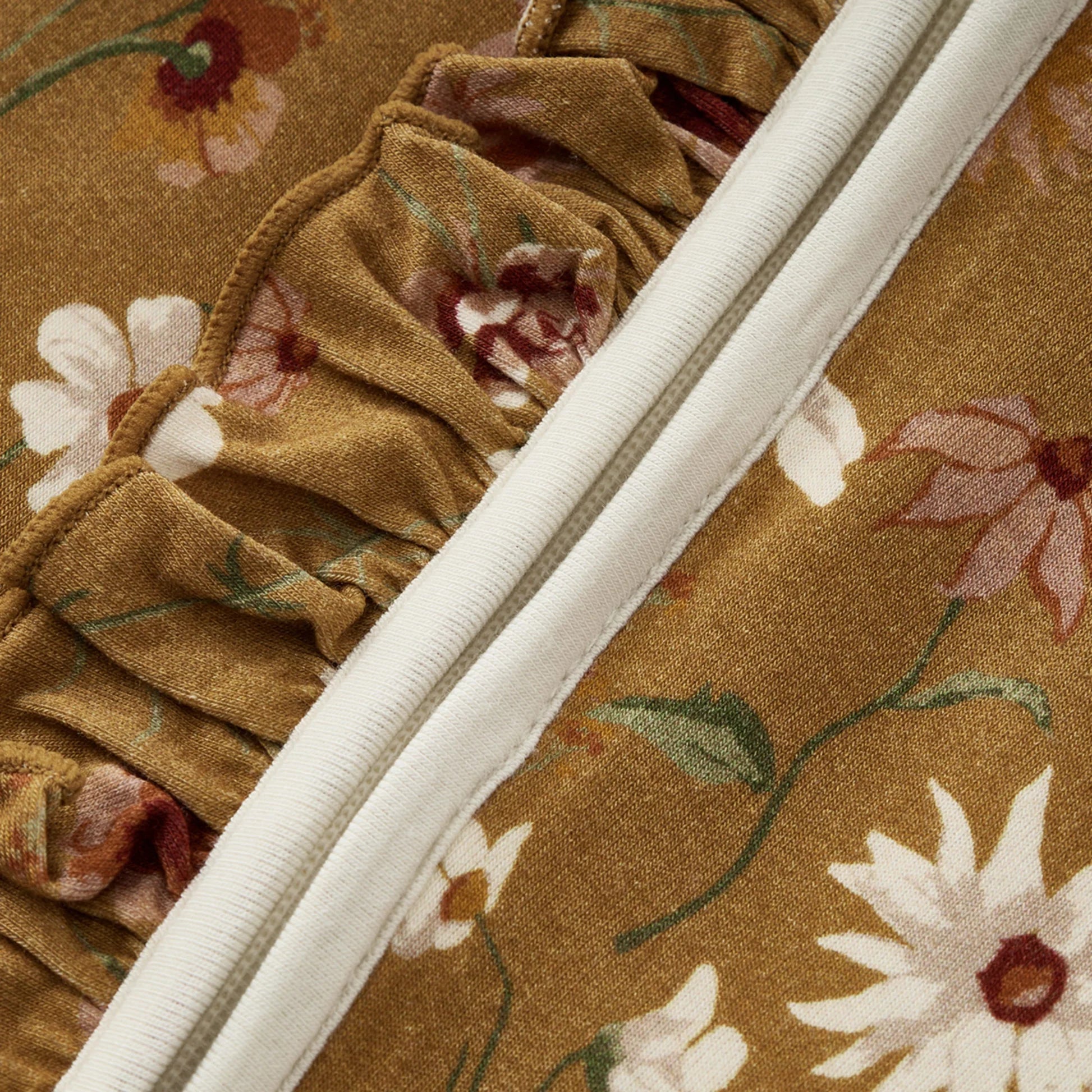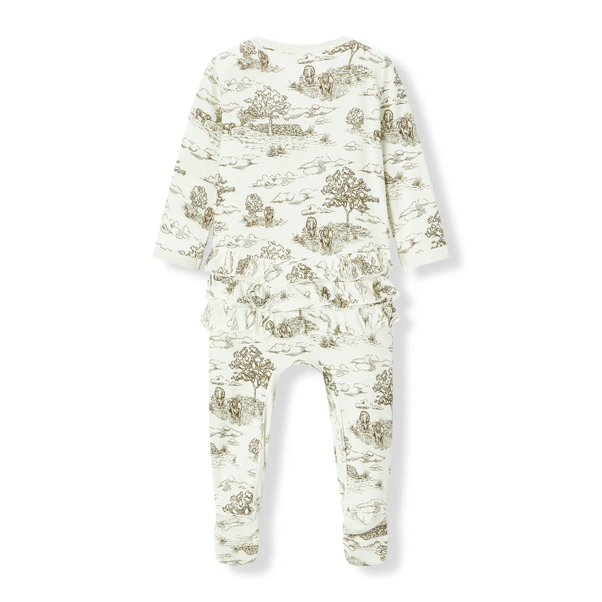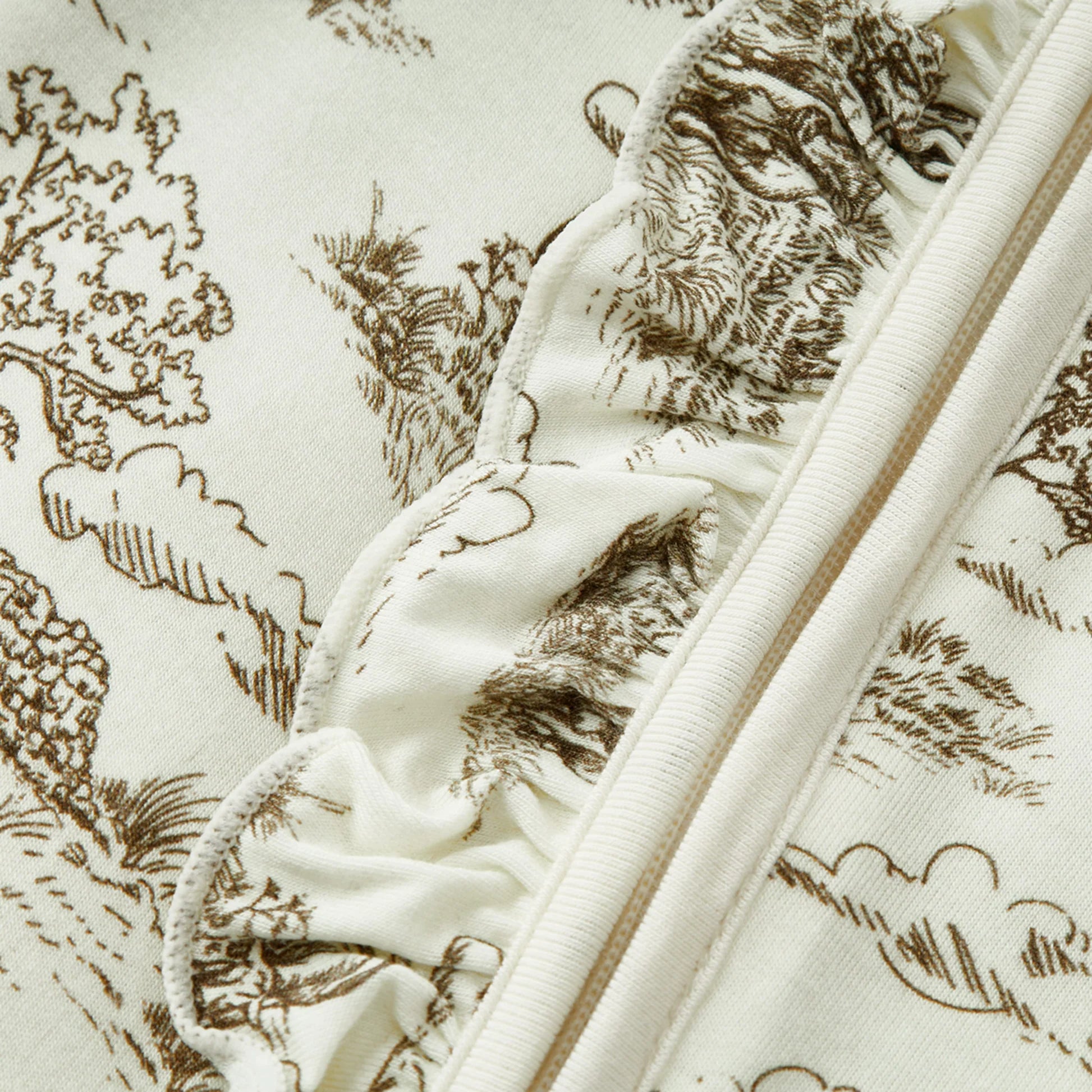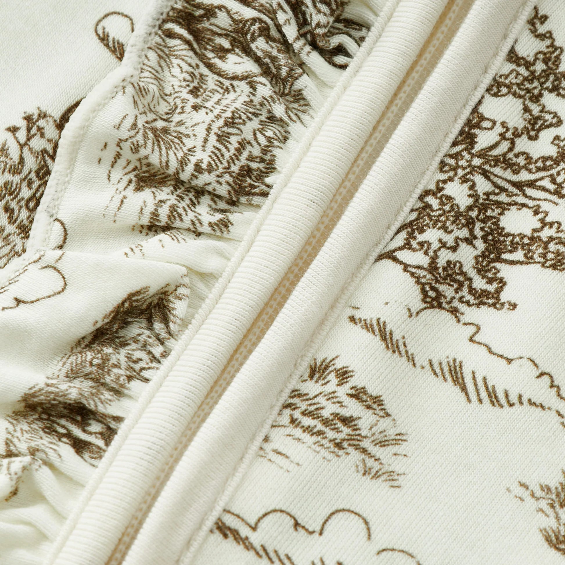 I zip, you zip, we all zip! Whether zipping from the top-down, bottom-up, or somewhere in between, we made changing and dressing just a wee bit easier with our baby Luxe Stretch Ruffle Zipper Footed Romper. A subtle, ruffle-edged asymmetrical seam and three cascading, full-width rear ruffles add a little extra fun. With dual, two-way zippers and a closed-foot detail, this timeless classic blends design with functionality while wrapping your little ones in gentle comfort. Three adorable prints available: Wildflower Apple Orchard, Country Toile and Honey Bear.