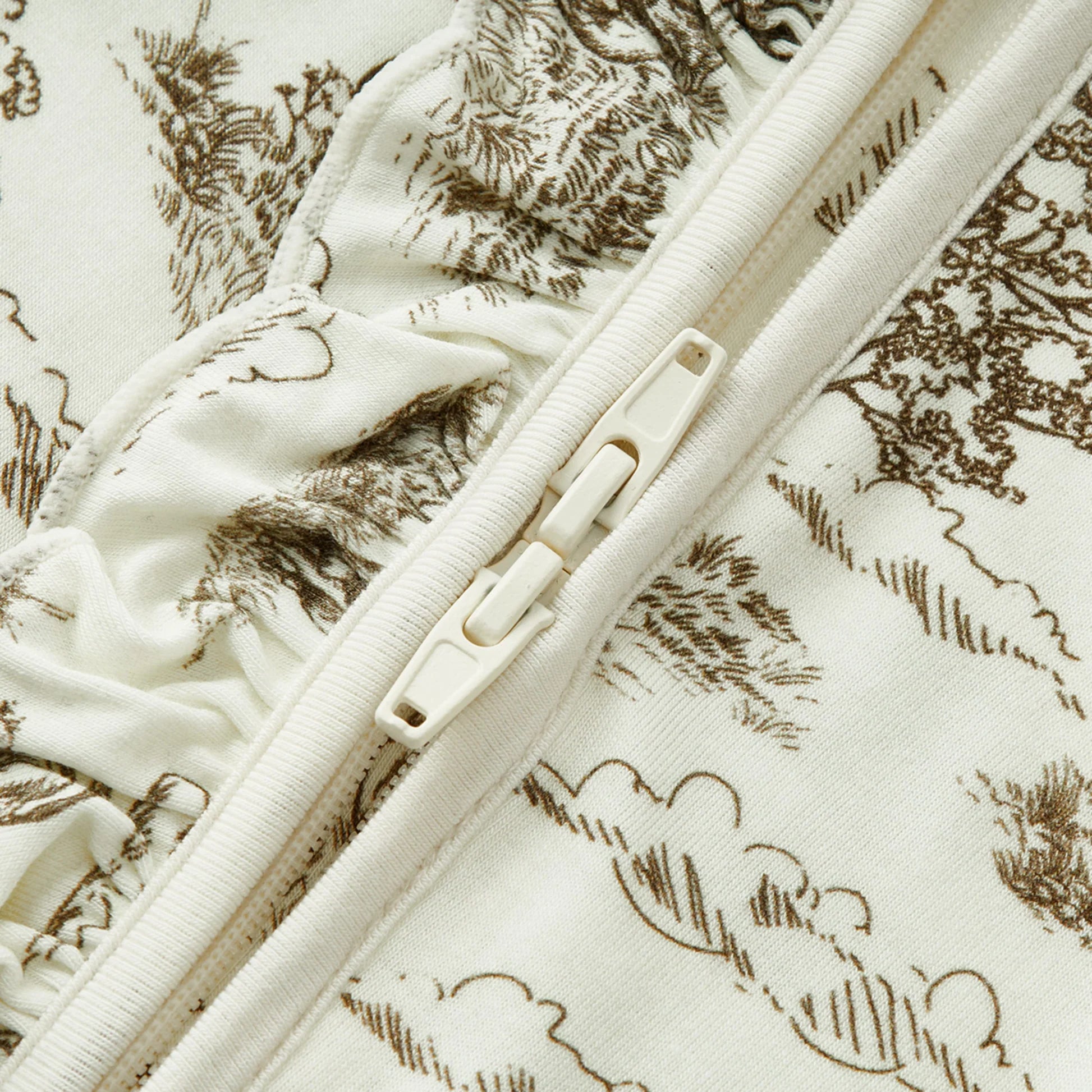 Country Toile Fabric Content: Luxe Stretch (Bamboo): Created of 95% viscose from bamboo and 5% spandex, the lightweight, breathable, and buttery-soft qualities of our Zipper Footed Rompers naturally comfort sensitive skin.