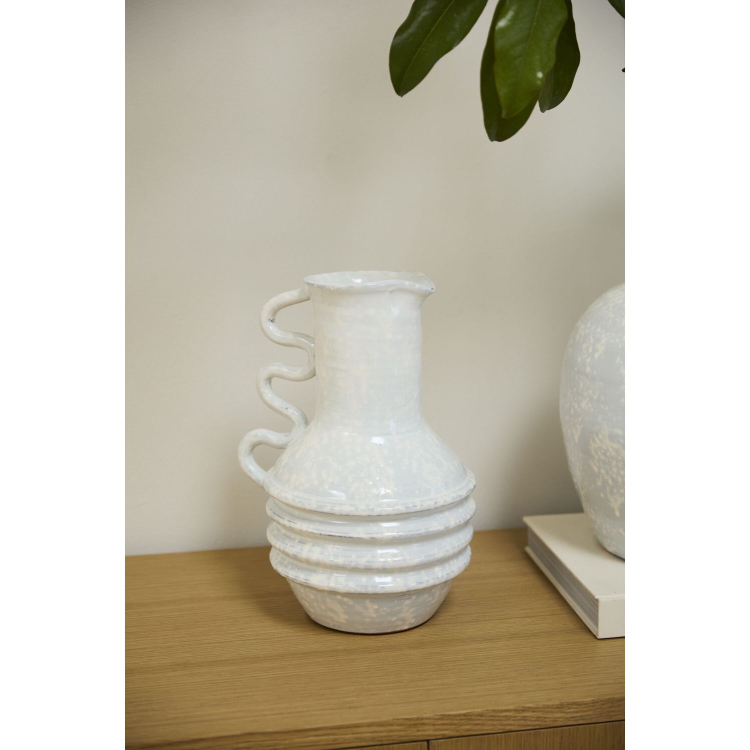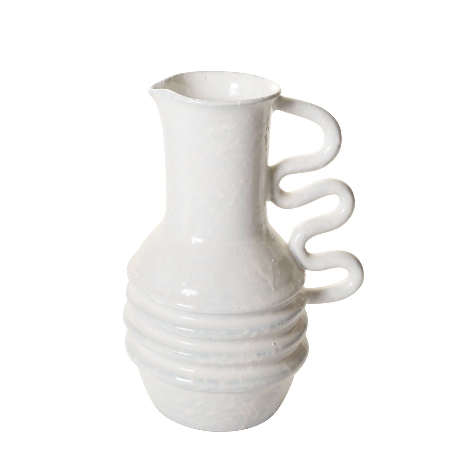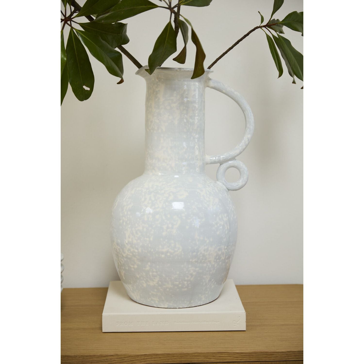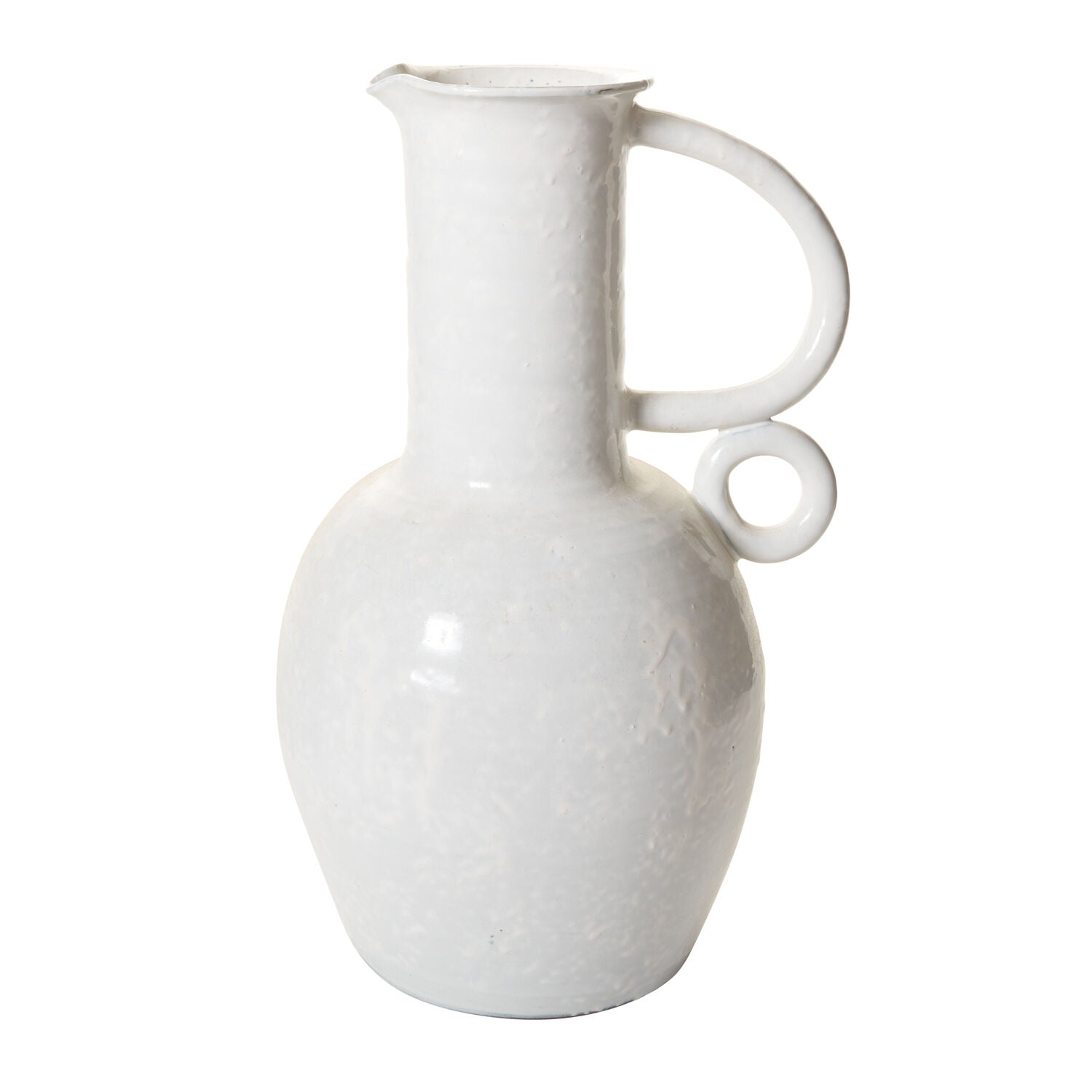 With its playful elegance & trend-forward yet classic design, the oversized statement Paria Vase livens up any surface. This extra-large vase is made from terracotta & features a glossy white glaze, slight textured finish & a uniquely-shaped, fun double handle to perfectly accentuate any floral styling & home decor trend. Available in two sizes!