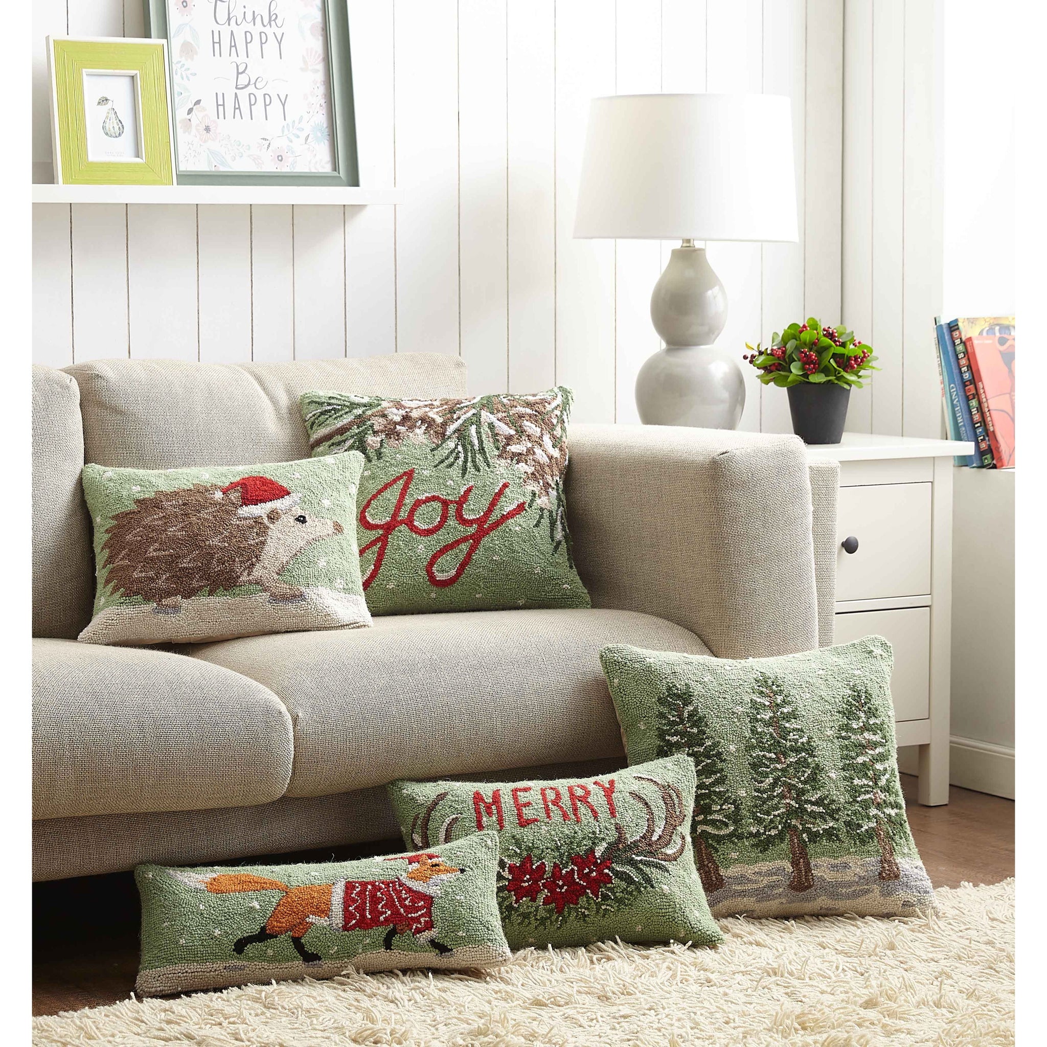★100% wool hooked rectangular accent pillow ★100% velvet backing ★Includes polyester insert, zipper closure ★18x18 throw pillow ★A festive way to spruce up your home for the holidays or would make a wonderful Christmas gift