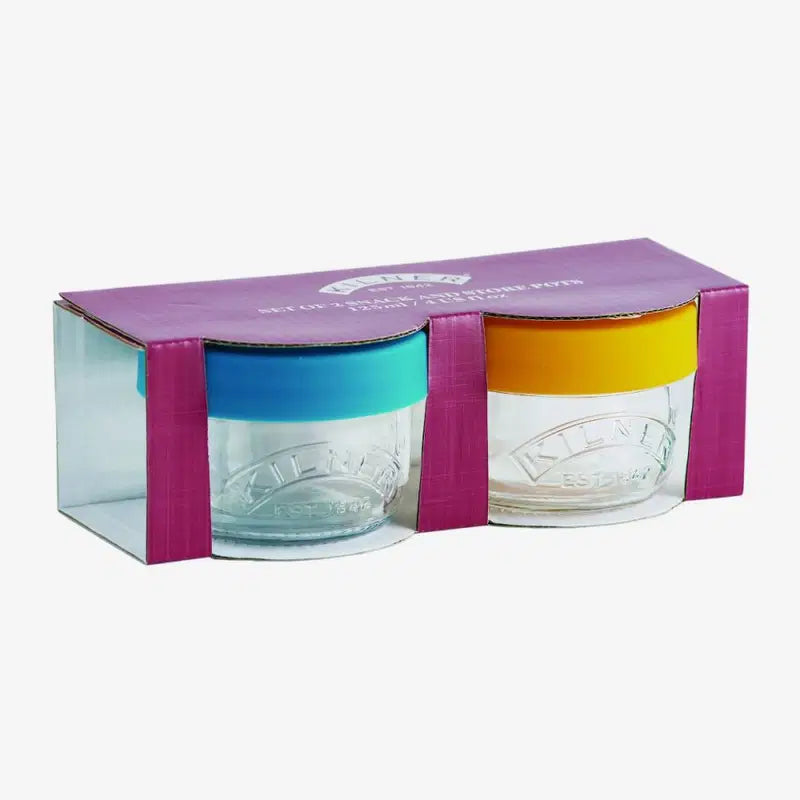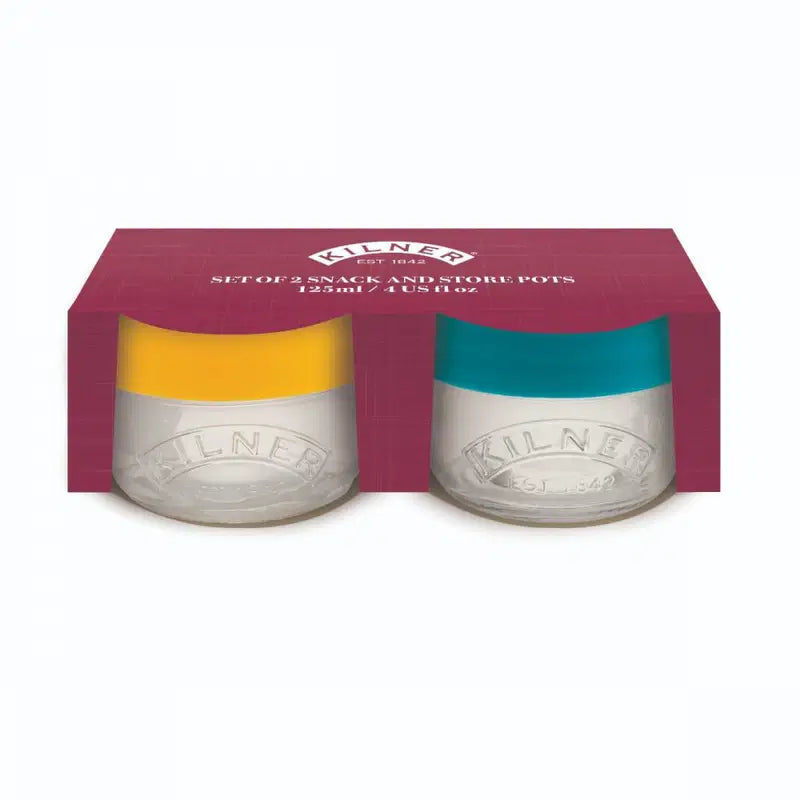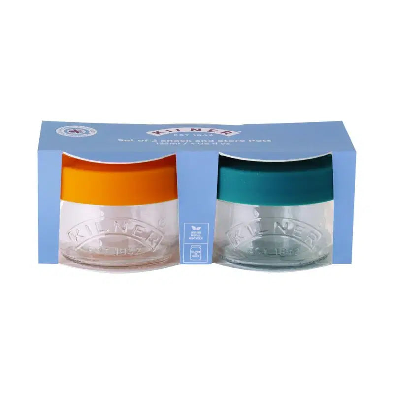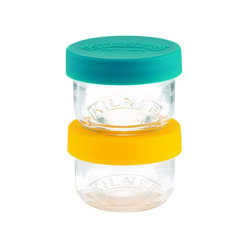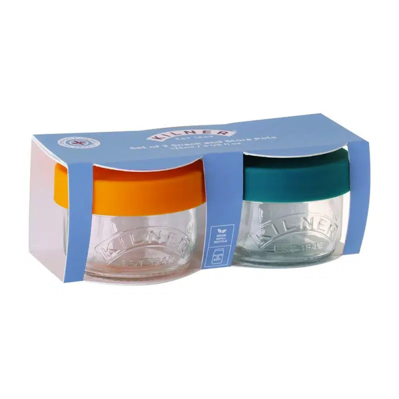 Easily store and transport your favorite snacks with the Kilner Snack and Store 4oz jars. This set of two jars come with vibrant silicone lids that create a leak-proof seal. The jars are designed to be stackable so they take up the least amount of space in your pantry, fridge, or wherever else you want to take them. Prep your overnight oats, store your toppings or take your favorite snacks on the go, all with the Kilner Set of 2 Snack and Store 4oz jars!