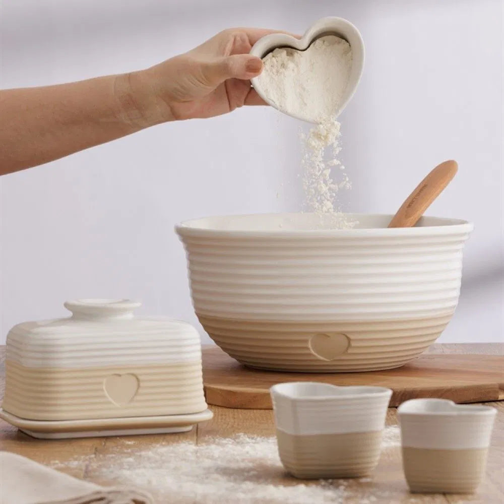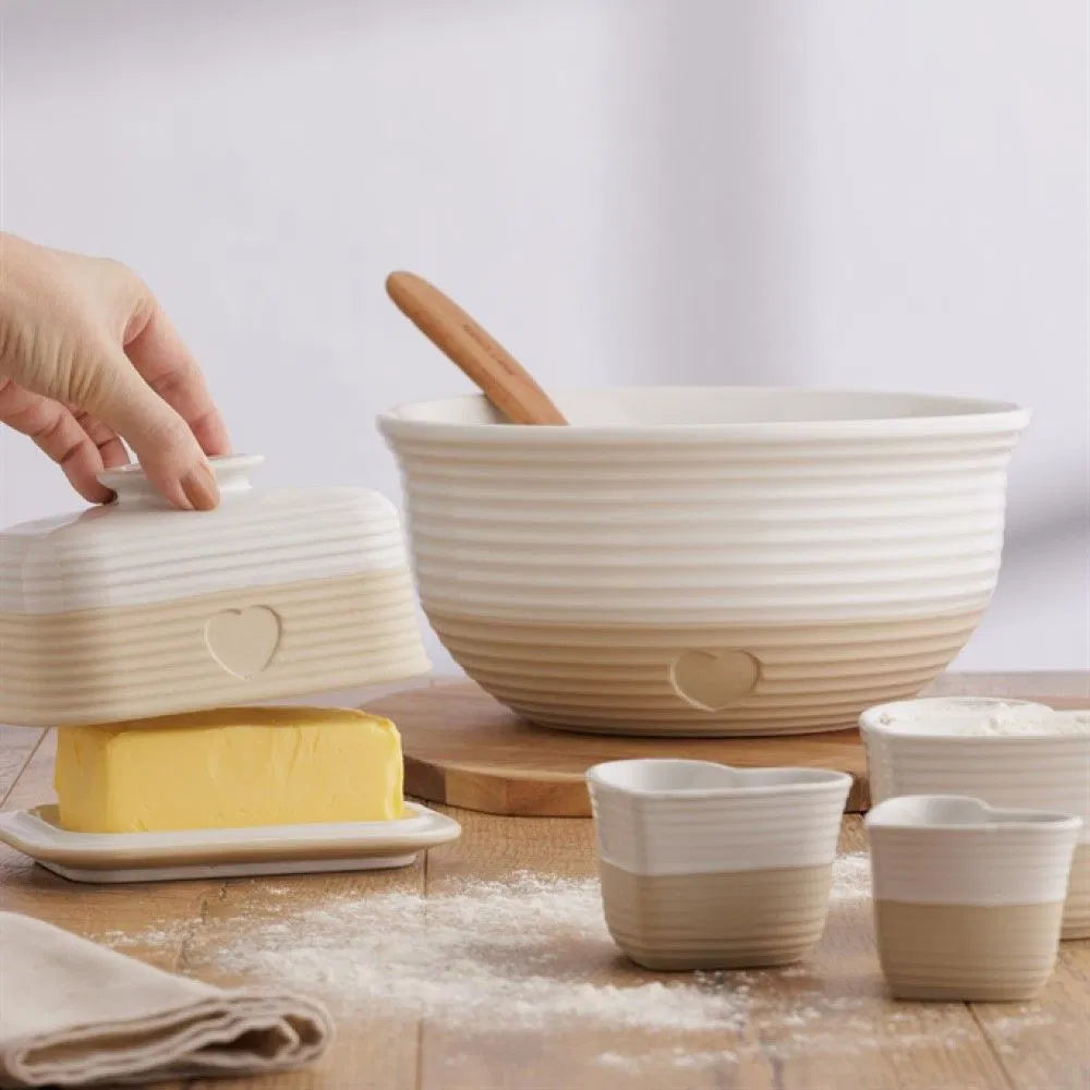 Bring undeniable elegance and farmside inspiration into your kitchen with the Rustic Charm Collection by Mason Cash! Reflecting the timeless allure of Provencial France, this collection welcomes warm neutral tones with blended matte and gloss finishes - offering a rustic yet refined look when preparing and serving homemade foods. This collection is made of Mason Cash's durable, high-quality stoneware and is complete with subtle heart-shaped motifs, letting each piece add a touch of love to any recipe.