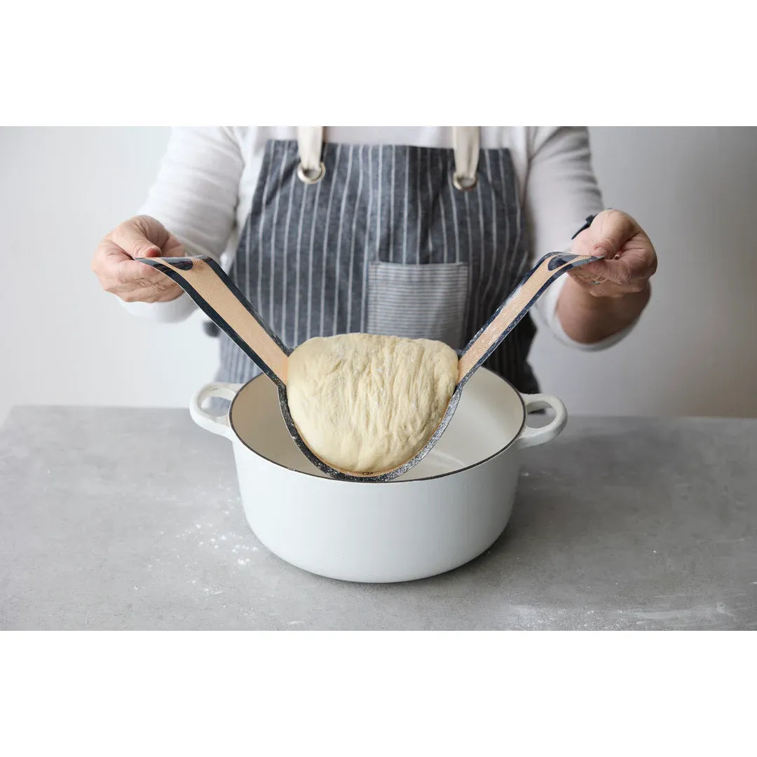 Eliminate the need for disposable parchment with our grade silicone with glass fiber bread sling! Fits most 4 quart Dutch ovens; oven safe to 450°. Microwave, Freezer and Dishwasher Safe.